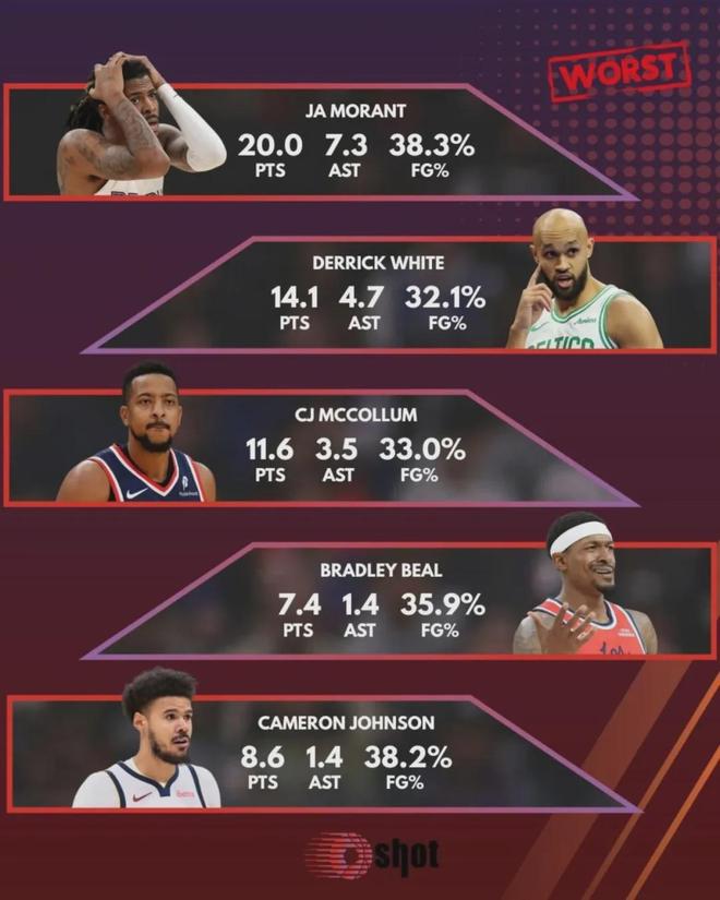 新赛季至今最令人失望的球队无疑是小牛队和快船队。截至今天比赛,小牛队以2胜6负的战绩排名西部第15位,快船队以3胜5负的战绩排名西部第12位。谁是最令人失望的球员?美国媒体选出了五名球员:莫兰特、怀特、麦科勒姆、比尔和卡梅隆约翰逊。独行侠的表现不佳是因为伤病。欧文和浓眉目前正在养伤。快船队表现不佳的原因是什么?许多球迷认为这是泰伦·卢的问题,快船队应该裁掉他。事实上,比尔、保罗以及快船队的其他新援本赛季的表现都不太好。在上面列出的五名球员中,比尔的场均得分最低。比尔本赛季为快船队首发五场比赛,场均上场20.2分钟。场均7.4分1篮板1.4助攻0.4抢断0盖帽。他的投篮投篮命中率为35.9%,罚球命中率为66.7%。所有七项统计数据均为职业生涯新低。他的三分球命中率为33.3%,是职业生涯第二低,仅比2021-22赛季的30%好一些。昨天,快船队在客场以102-115输给了太阳队。比尔队一接到球,主场太阳队球迷就发出疯狂的嘘声。本赛季比尔14投仅2中,三分球5投1中,仅得到5分1篮板1助攻2失误3犯规,正负值为-23。网友调侃快船给比尔的钱少了,太阳给比尔的钱多了。您认为这会对谁有帮助?比尔与太阳队的合同还剩两年,价值1.1亿美元,但在解约过程中放弃了1400万美元。 Sun 将在五年内支付剩余的 9,700 万美元。比尔与快船队的合同为期两年,总价值1100万美元,其中包括2026-27赛季562万美元的球员选项。合同还包括es 15% 商业担保。即使比尔已经退役,他在接下来的五年里每年仍将获得近2000万美元,这已经超过了联盟大多数球员的年薪。奇才队在五年内给了比尔2.5亿美元,这是值得称赞的。太阳队将保罗和几个选秀权交易给了比尔队,这更是“难能可贵”。保罗和比尔现在都在快船队。保罗本赛季为快船队出战了八场比赛,全部都是替补出场。他场均上场12.9分钟,得到2.3分1.8篮板3.6助攻1.1抢断0盖帽,投篮命中率为24%,三分命中率为26.3%。所有七项统计数据均为职业生涯新低。过去三场比赛,保罗场均贡献1.7分,三分命中率为14.3%。一些球迷认为快船队的糟糕表现不应该归咎于比尔和保罗。他们的年薪加起来不到1000万美元,主要参与者应该是他ld对此负责。不过,伦纳德和哈登的数据看起来还不错。伦纳德场均贡献24.3分、5.7个篮板、3.5次助攻和2.5次抢断,三分命中率分别为50.5%、40%和96.3%。本赛季哈登场均得到23.3分、5.3个篮板、8.6次助攻、1.3次抢断和4.1次失误,三分命中率分别为47.1%、41.7%和93.3%。他的场均得分是过去五年来最高的,他的投篮命中率是他职业生涯第二高的,他的三分球命中率是他职业生涯最好的。伦纳德本赛季到目前为止已经缺席了两场比赛,哈登本赛季到目前为止也缺席了两场比赛和一场比赛。快船队的场均得分排在联盟第28位,场均失误排在联盟第3位,但投篮命中率和三分球命中率却处于联盟中游。你认为快船队的问题出在哪里?